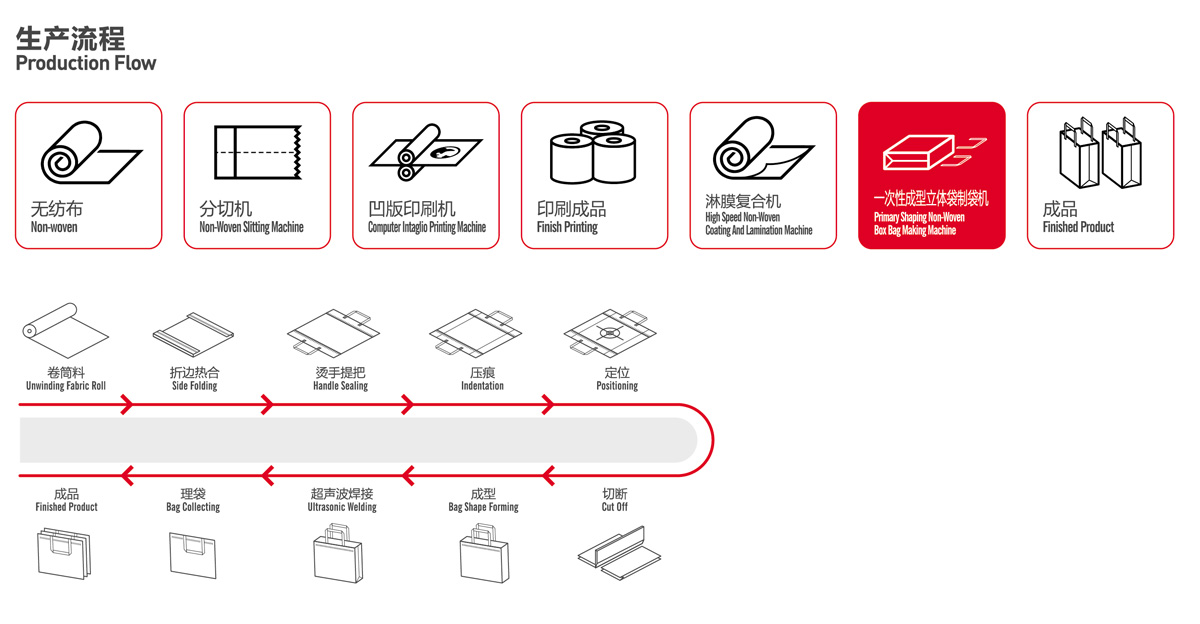 該機適用于原材料為無紡布,覆膜無紡布,專業(yè)生產(chǎn)一次成型覆膜的立體袋(免翻),設(shè)備生產(chǎn)穩(wěn)定,袋子熱合部位牢固,美觀、大方,可反復利用,主要用于生產(chǎn)無紡布煙、酒包裝袋,無紡布飲料包裝袋,禮品袋,酒店廣告袋等無紡布袋,該機集機電為一體,運用LCD觸摸屏操作。配以步進步式定長,光電跟蹤,電腦自動定位,電腦自動糾邊,準確,平穩(wěn),自動計數(shù),即可設(shè)定計數(shù)報警,自動燙把手,自動疊袋等工控裝置。